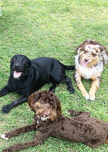 We encourage happy wagging tails, cold noses. and playful barks. Belly scratches, ear kisses and chew toys are all on the agenda too. We do not object to dog drooling and shedding either! Our staff are trained in canine body language, consent testing and pet first aid and we practice polite daycare obedience skills.
