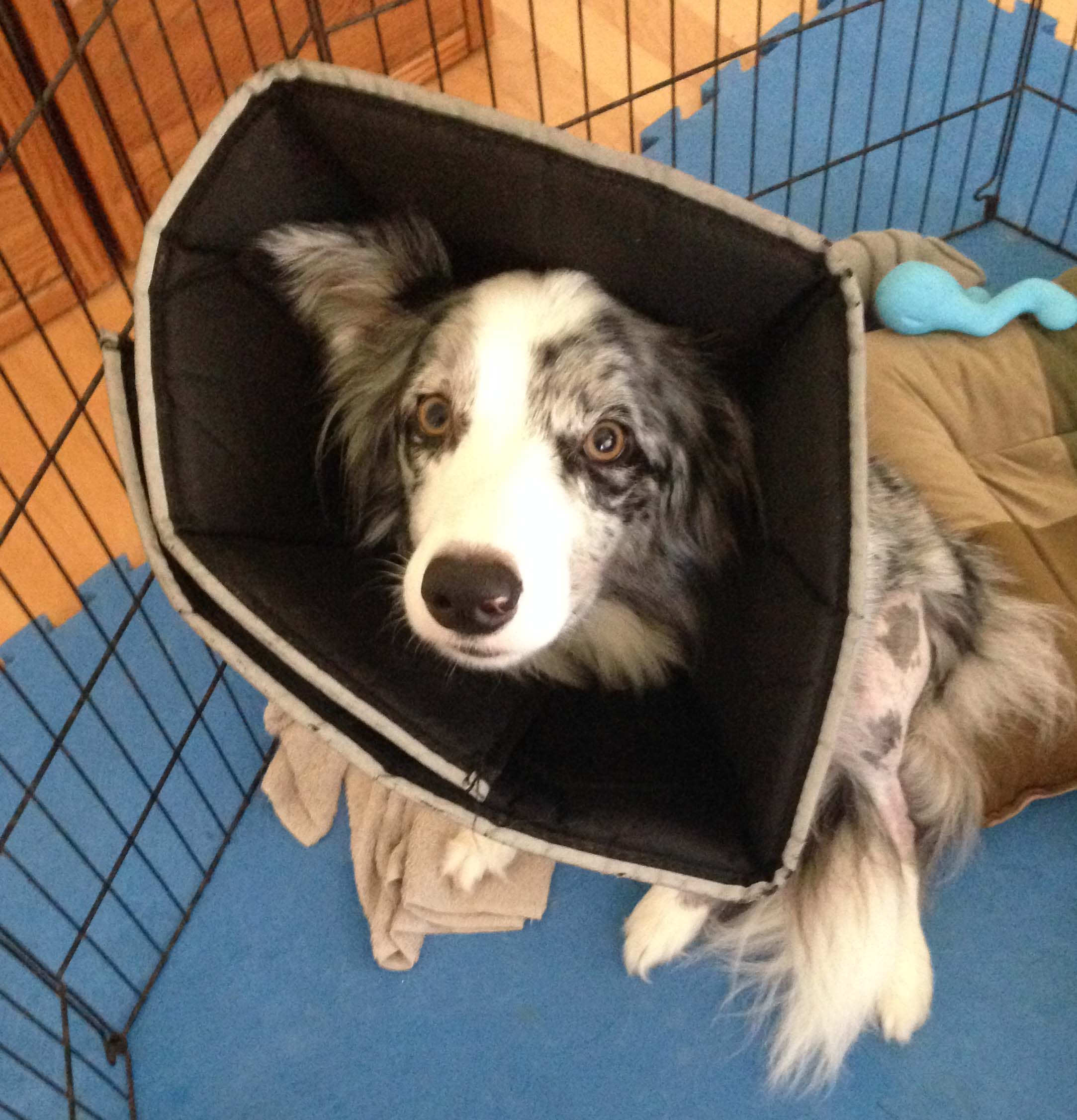 Being forced to rest during recovery doesn’t mean that all training has to stop. Angelica Steinker, a certified dog trainer and of Courteous Canine Dog Smith, suggested several options: “If you have a dog limited in movement because of an injury, there are lots of things you can shape. For example, have your dog lie down, and you can use your clicker to shape head movements.” Steinker said that a dog that can move one paw or even his nose can learn to indicate items based on a cue. Teach a dog to touch a particular object when prompted so that the dog can pick that object out by name. Eventually you could have several objects out, like a ball, a toy, and a bone, and ask the dog to indicate the ball, for example. Or play a matching game – have the three items in front of your dog and the same three items behind your back. Your dog should indicate his ball when you show yours, for example. “This type of training is very mentally taxing so you can get a lot of bang for your buck shaping discriminations like this,” Steinker said.