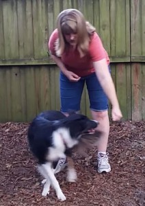 If you’d like to add a verbal clue, like “spin,” “turn,” or “left” to go with the motion, start by saying the cue and then, a split second later, give your hand motion. Your dog will start to anticipate your hand cue and will eventually offer to spin after the word alone. (Every few repetitions, have a slightly longer pause between word and the cue to see if your dog has picked up on what you want.) Praise and give lots of treats when this happens to help your dog understand what you want.